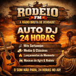 A programação Auto DJ da Rodeio FM – A Rádio Bruta de Verdade! foi criada pra não deixar o som parar nunca. São 24 horas no ar com uma seleção musical de alta qualidade, pensada pra quem vive o agro, o sertanejo e o estilo bruto de viver.